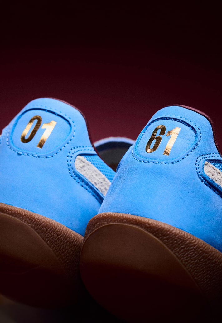 The PUMA x Man City Palermo 0161 arrives in the club’s traditional sky blue tones on the upper, while the brand’s formstripe rides down the side of the foot in white. Internally, burgundy is used as a nod to the various times it has been used as the side’s alternate colour, most recently for this season’s third strip. The design is then signed off with ’01’ and ’61’ on the heel of the left and right shoes respectively.