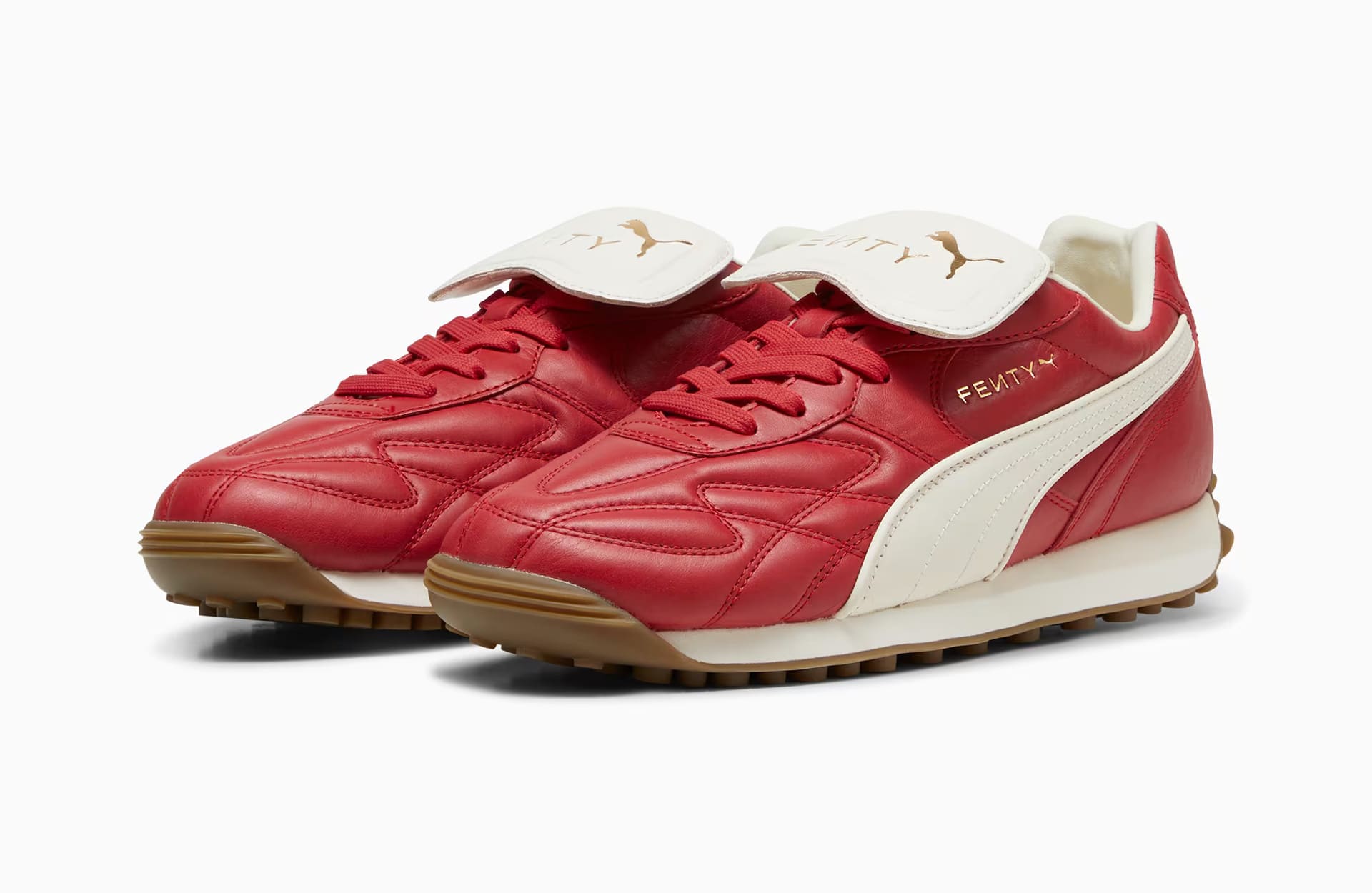 Set for AW24, global icon Rihanna and PUMA have launched two new colourways of their coveted FENTY x PUMA Avanti sneaker. Arriving in a choice of “Warm White” or “Club Red”, it’s reinvented with premium leather, touches of gold, and retro gum soles.