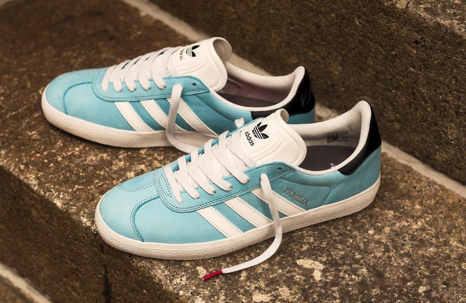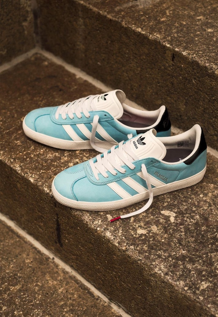 Minnesota skate brand Familia has an indoor skate park that is said to be one of the best in the Northern United States. It’s an integral part of what is a thriving skate scene in the region, and so this collaboration feels like a natural fit. The highlight of the drop is the Gazelle ADV, a skate version of the classic silhouette, which arrives in club colours with nubuck and suede detailing. Debossed “MNUFC” and “Familia” lettering sit on the right and left shoes respectively, running parallel to the traditionally positioned white Three Stripes. A ribbed white tongue is topped with a Trefoil logo in black, and that’s joined by a black leather heel tab featuring the stylised Familia branding. The insoles then feature dual Familia and adidas branding.
