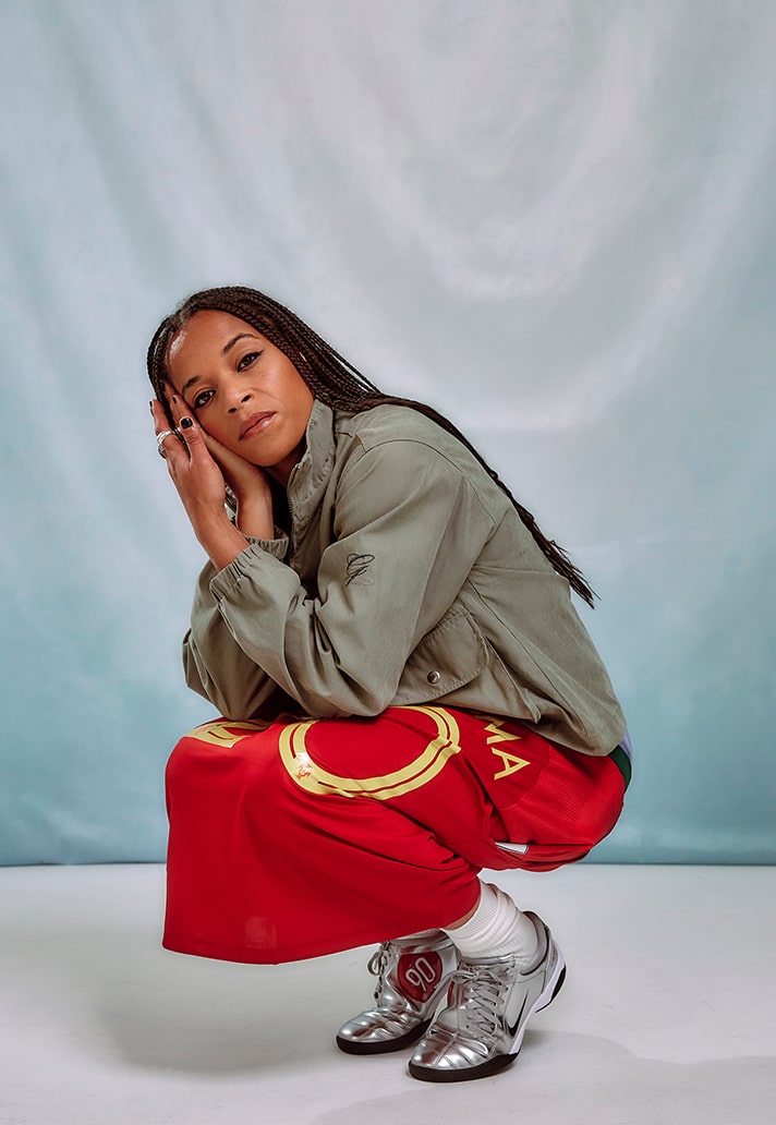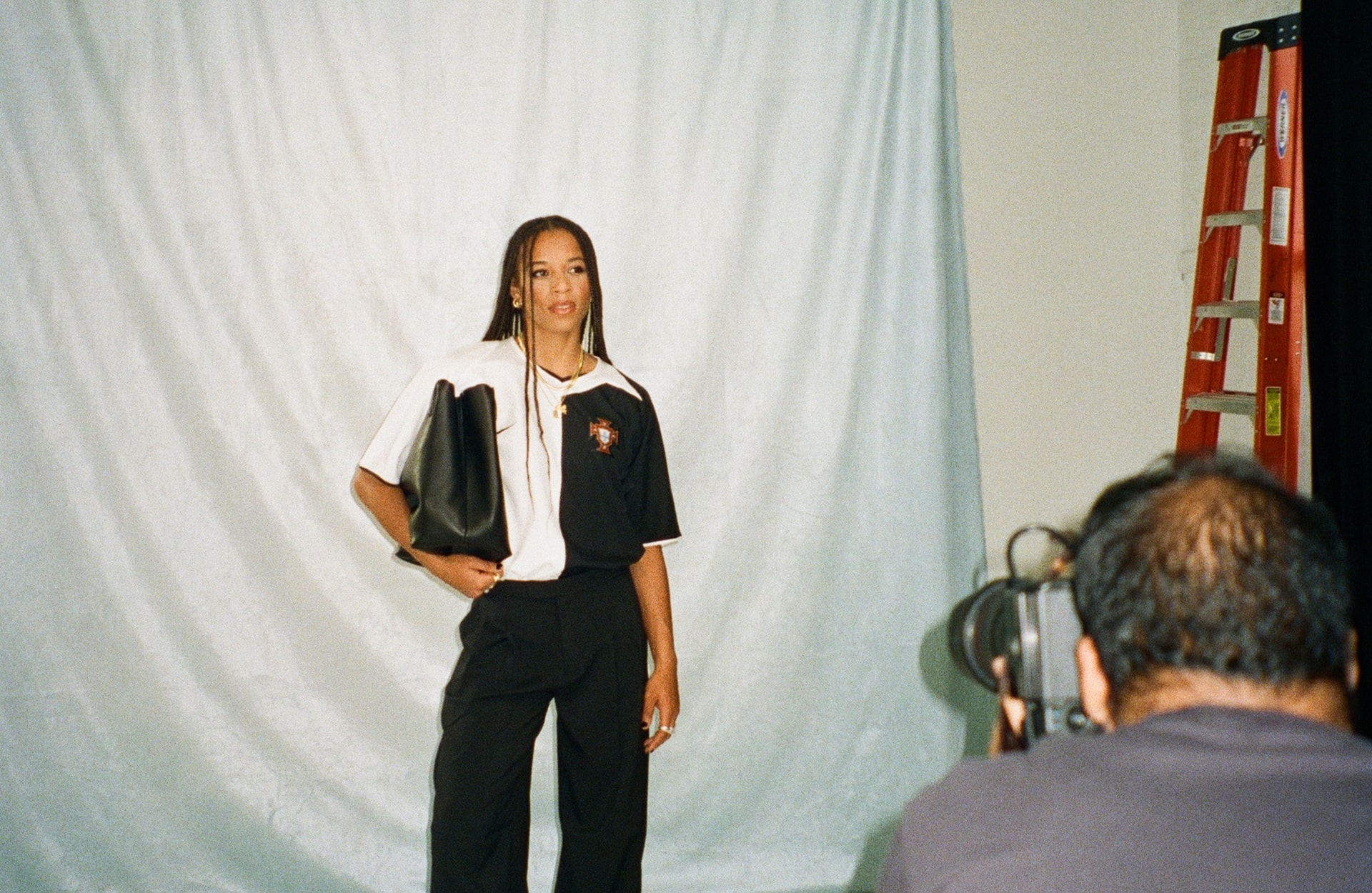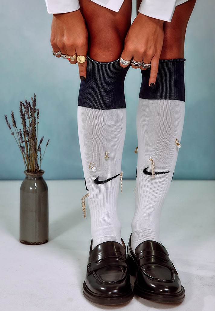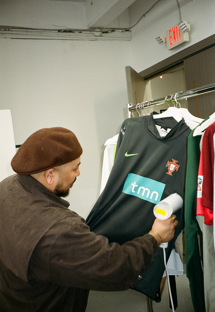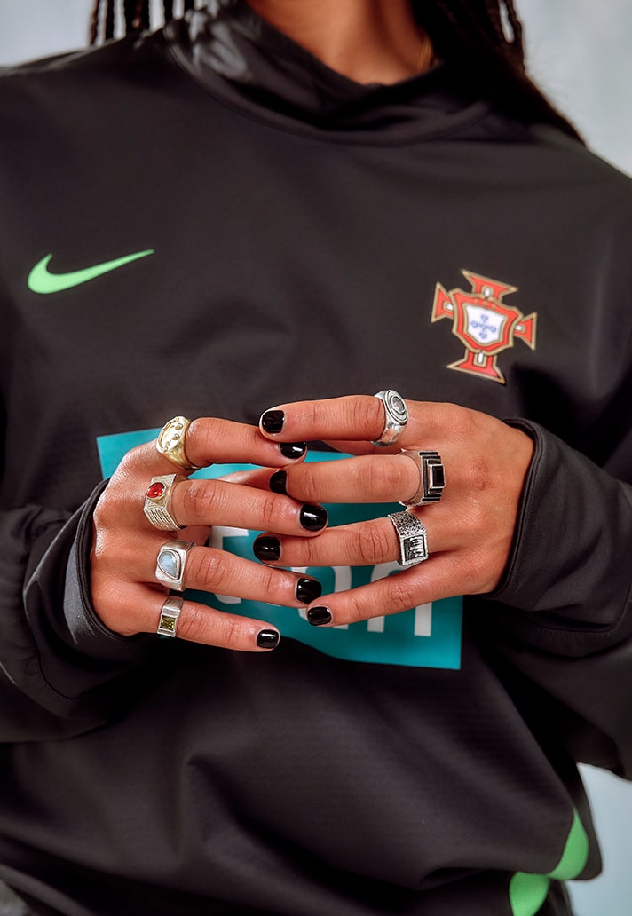 Their most recent project brings them together with Portuguese International and Gotham FC winger, Jéssica Silva. Silva is no stranger to creative expression on and off the pitch, showing her flair and skill during 90 minutes to then rocking her own unique style outside the stadium walls. Saudade House have chosen to tell a story about Jéssica’s lifestyle through this project, highlighting culture and heritage fused with contemporary fashion.