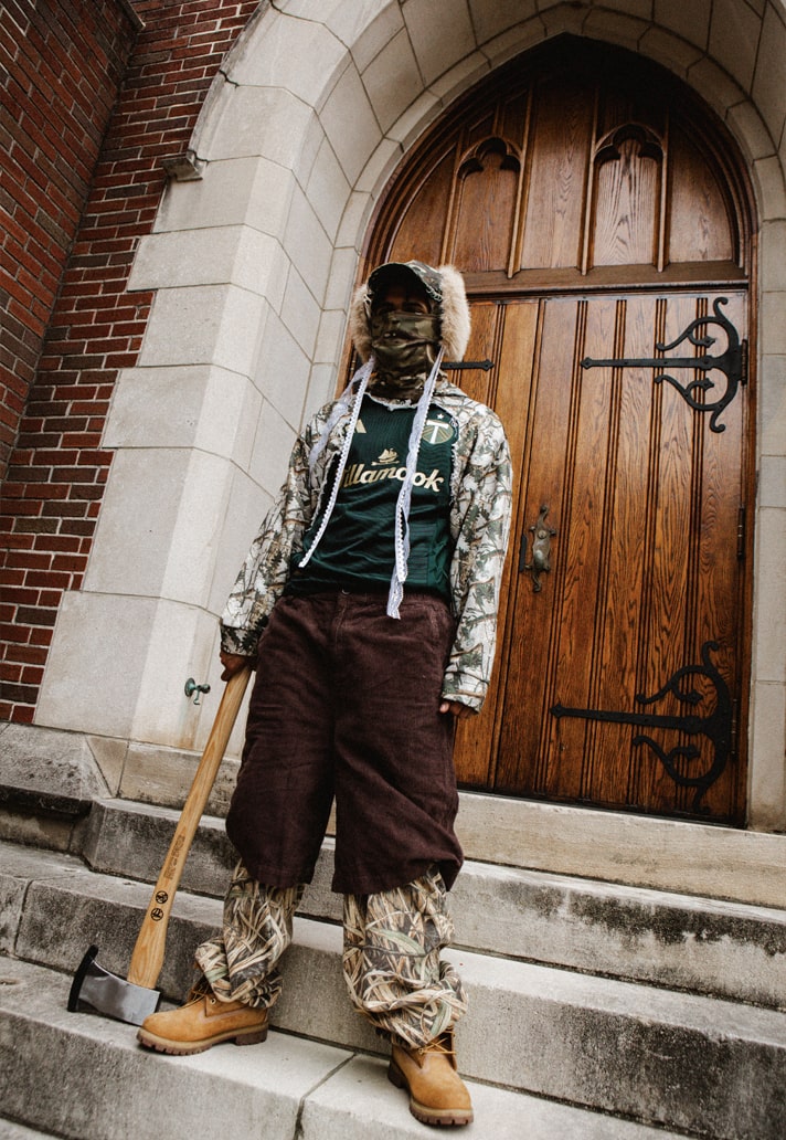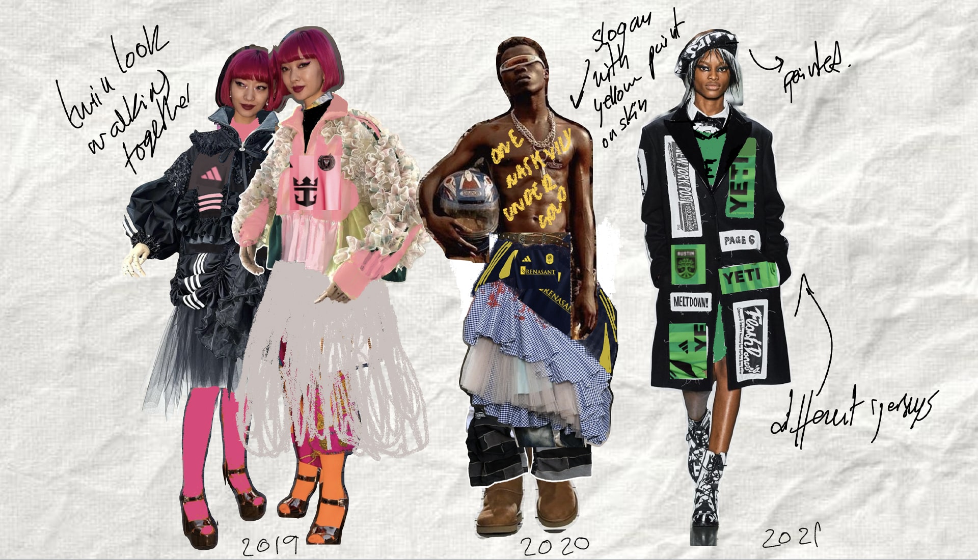 This outfit is a nod to Vetements’ football-inspired collaboration, merging streetwear with sports culture.