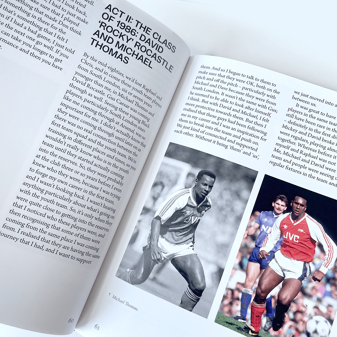 Blame space limitations for only one chapter being dedicated to Arsenal’s coveted football jerseys, aka SoccerBible’s specialist subject. Nwonka left out three or four in total and chose to focus on how the 2022/23 ‘Jamaica’ pre match shirt was designed and adopted as the unofficial Notting Hill Carnival uniform that year. More frequent kits drops make it harder to ascribe identity and cultural meaning and the academic identifies Arsenal’s 1990-1992 kits as a crucial turning point. “I associate the home kit with Black Arsenal more than everything else. You had the critical mass of Black players – Paul Davis, Michael Thomas, David Rocastle, Kevin Campbell, Ian Wright – and a swelling of Black Britishness in popular culture and everyday forms of expression,” he shares. “Think Soul II Soul, The Real McCoy on TV, Frank Bruno, Linford Christie... The kit embodies that complete moment.” Nwonka was glad to be consulted on Arsenal's 2024/25 LABRUM away kit. “I like the look of it but I’m Nigerian and not someone who needs to curate a Black ethnic experience through external things.”