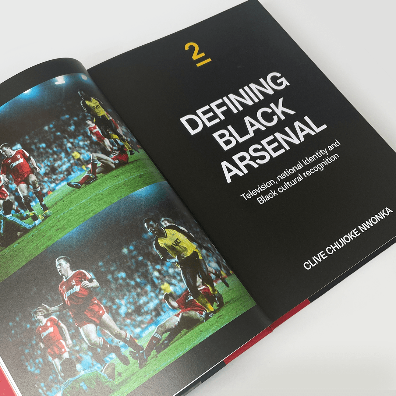 Part of the joy of reading Black Arsenal – a highly visual 306-page anthology presenting enlightening perspectives on modern Black British cultural history – is the collective validation. Whether you’re Black and see yourself in the Ian Wrights, Kanus, Thierry Henrys, Rachel Yankeys, and Bukayo Sakas of this world or not, define yourself as a diehard Gooner through thick and thin or not, have experienced Highbury and the Emirates live or not, you’ve probably envied Arsenal’s swag, celebrity fans, and seemingly utopia-like multiculturalism. Lord knows I have as a Chelsea fan, unable to wear recent Jamaica and Africa-inspired kits (being both Jamaican and Nigerian) without scraping off the club crest. I involuntarily nod along as Baroness Lola Young ponders improvements in the Black female football experience with Lerina and Sophia in one chapter, and co-editor Dr Clive Chijioke Nwonka unpacks significant TV and strategic digital milestones in others, flinching when Gail Lewis recalls Arsenal crushing Chelsea at home in May 2023.