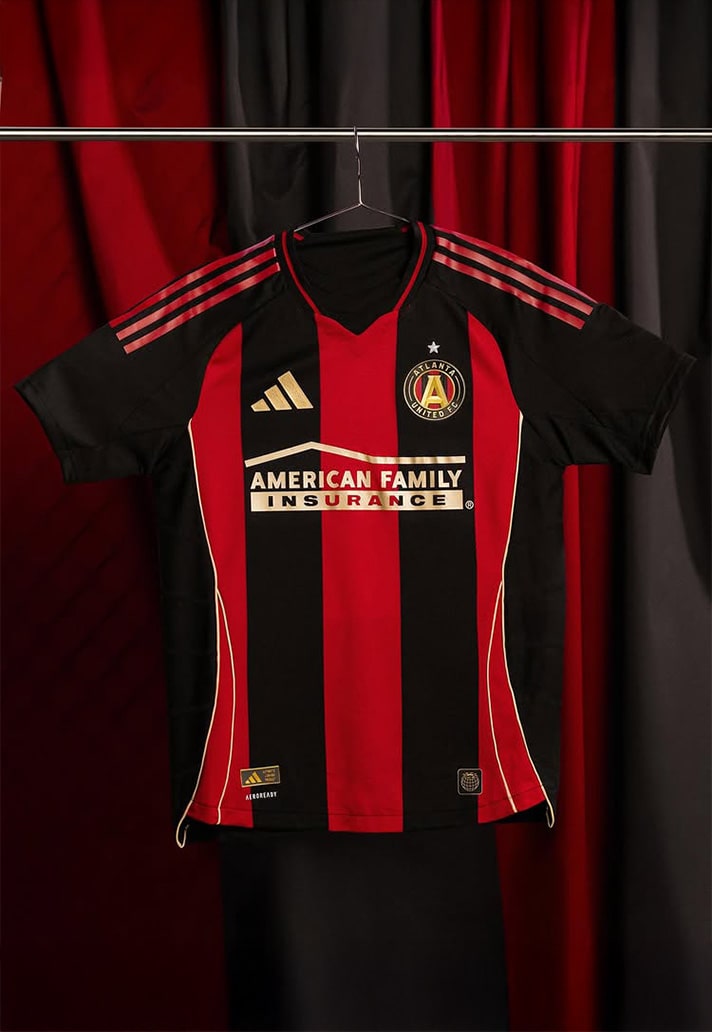 Starting off with Atlanta United who stick with the club's core 5-stripe look for this year's primary kit. They take on a refreshed look with gold accents highlighting the club badge and adidas logo, giving this kit a little more class. Tidy in its execution. Not saying 'wow' yet but it's a solid start.