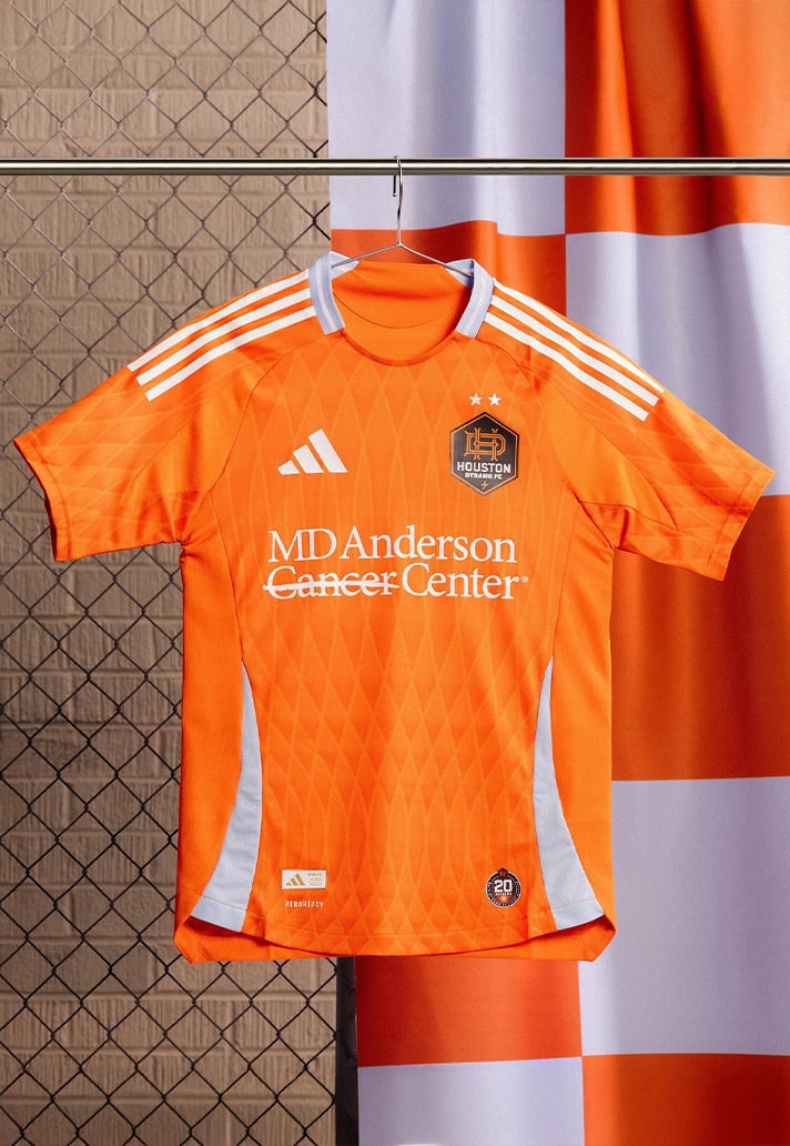 Dressed in Houston's signature orange, this kit is definitely a stand-out on the pitch – or from a mile away. Extra credit for the design detailing on the front of the jersey and the bold colours but, other than that, not a lot going on.