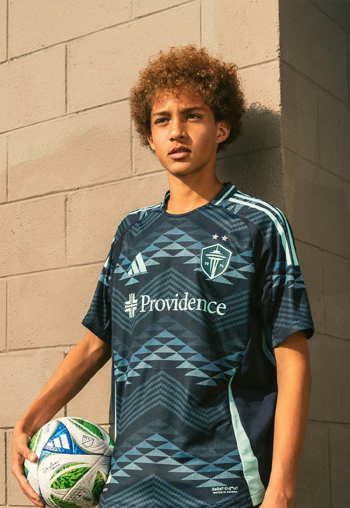 The 'Salish Sea' kit is designed in collaboration with artists representing the Puyallup, Muckleshoot and Suquamish tribes – paying homage to the Sounders deep connection to the Puget Sound. The stunning pattern is a nod to the flowing nature of the water, though the voices of women who have continued Coast Salish weaving practises for generations. A simple black base, complemented with multiple shades of blue and a beautiful story to go behind it – chef's kiss.