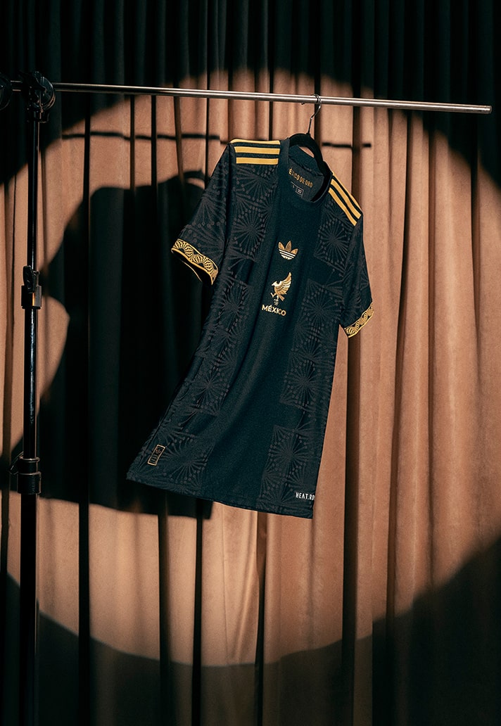 The Mexico national team players now become the stars of their own film, with all eyes on what Mexico can succeed in the next couple of years for the fans that live and breathe fútbol. Adidas have dressed the players in a kit that is appropriate for stars, fashioning a clean black and gold colourway. The all-black base sees glowing gold accents amongst a deconstructed Mexico crest, which is paired next to the iconic Trefoil logo. The Trefoil has not been seen on Mexico jersey for over 30 years but now makes a triumphant return in one of the cleanest national team kits we have seen in years. Give us some serious 80’s nostalgia. Detailing on the collar and cuffs take on inspiration from the Mexican tradition of the Mariachi, staying true to the traditional culture of the country.