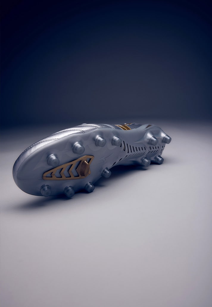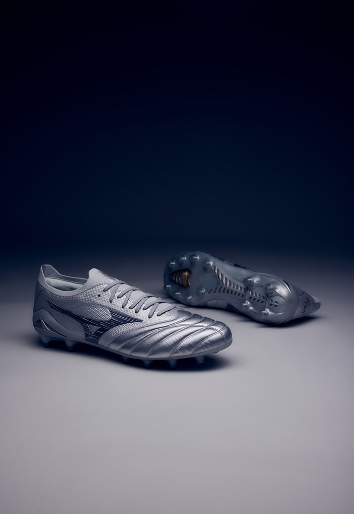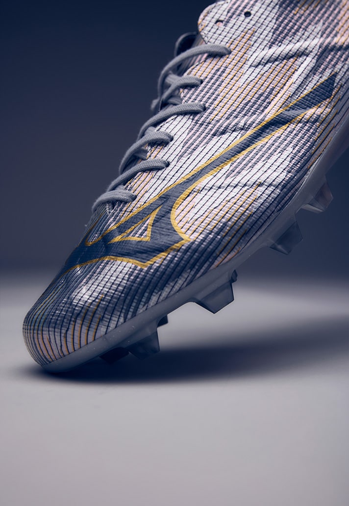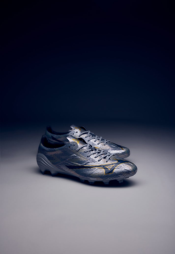 The Alpha II is once again available as part of the Made In Japan series – the most premium version of the boot, hand-crafted with the finest materials in the Mizuno factory in Japan. Similar to the patterns on the Alpha II’s dropped earlier in the year, the silo takes on another iridescent/chrome aesthetic, playing into the idea of ‘lightspeed’ to enhance their reputation as a speed boot in a competitive market against the likes of the Mercurial and F50.
