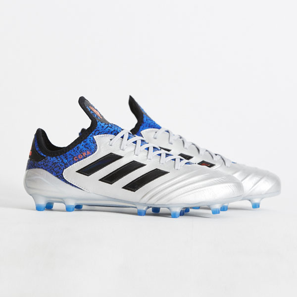 Now, two years later, Adi have again revived the vlue and white to dress up their latest version of Copa. The boot is fashioned in a ‘pure white’ base, complemented by a blue line splitting the boot down the middle. The renowned three stripes also are dressed in the same black fit seen on the 11pro’s and a ‘11pure’ sign off is stamped onto the lateral heel. Onto the soleplate, we see a chrome-blue finish onto a classic Copa Pure III soleplate – the same stud pattern and technology as seen on recent releases.