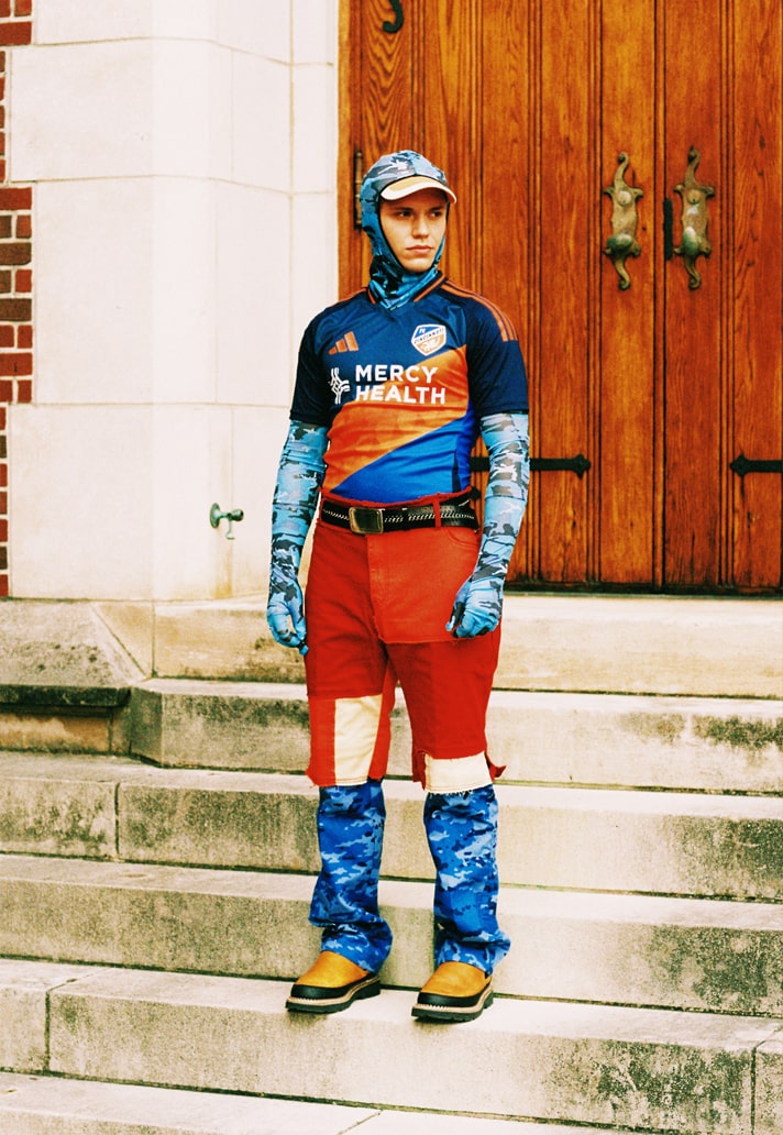 Each of the 30 looks in the collection is inspired by a specific year between 1995 and 2025. I immersed myself in those years, exploring pop culture, iconic fashion moments, and pivotal football events. I wanted to capture the ambiguity between football kits and high fashion, taking visual cues from legendary collections while reinterpreting them through a footballing lens.