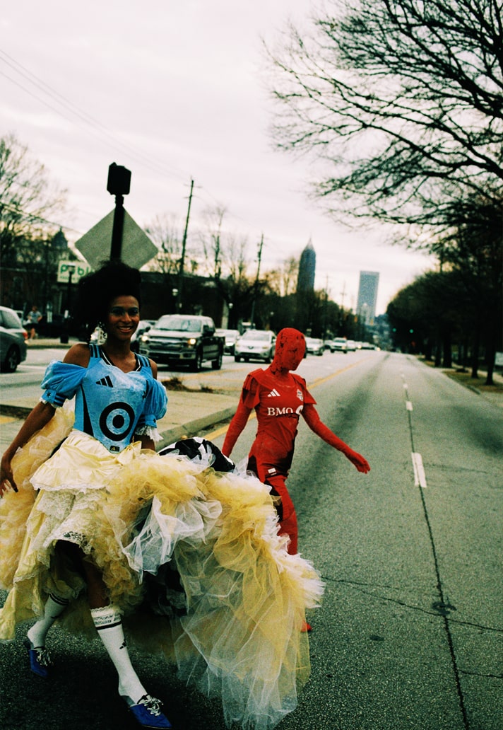For me, it’s a fusion of concepts that feels natural. I love pushing football into unexpected places, stripping it of its traditional context, and reimagining it through a different lens. Whether that means feminizing the sport’s aesthetic, de-gendering its identity, or simply challenging how people perceive it, I’m always looking for ways to redefine football’s place in fashion.