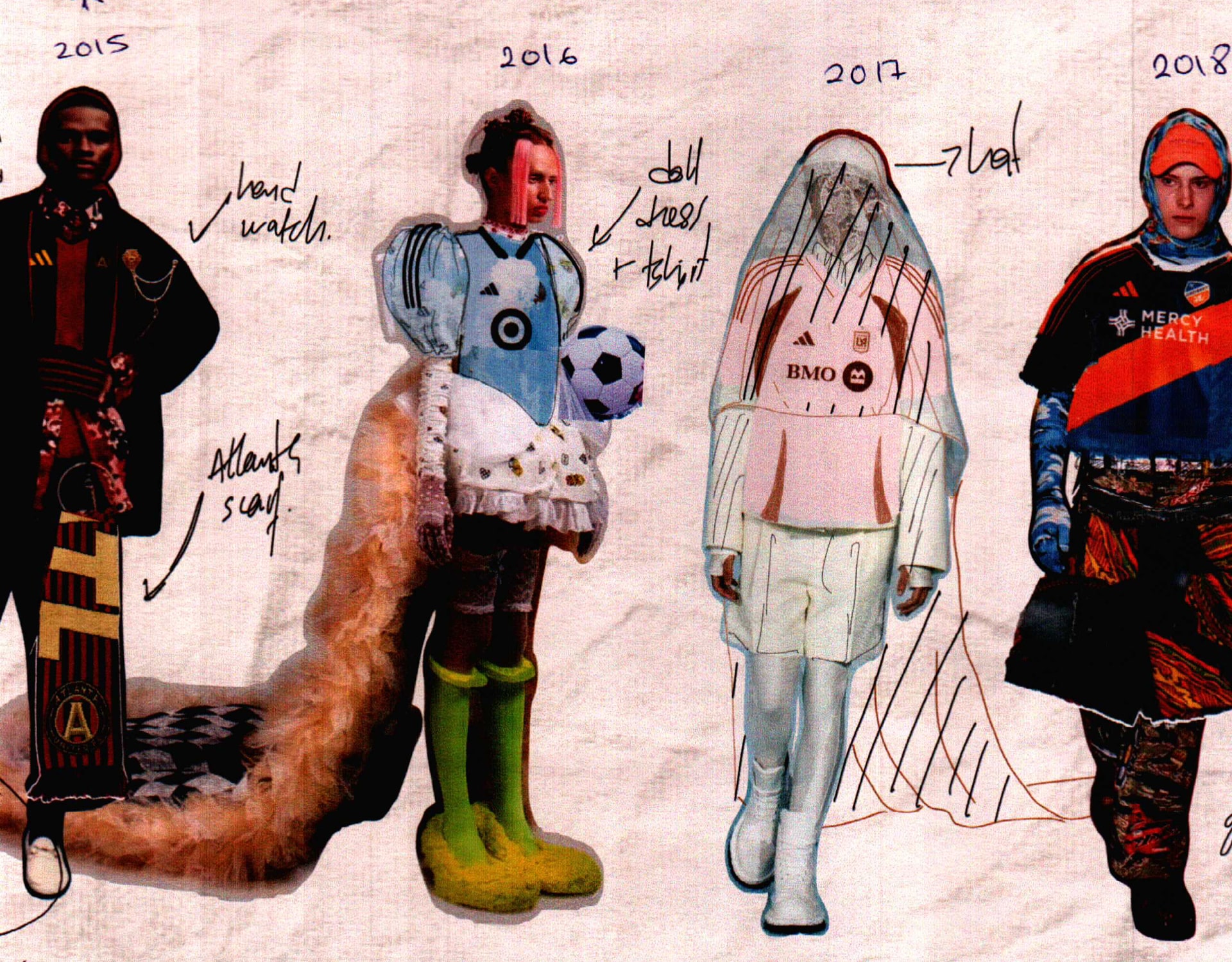 Eventually, I landed on the idea of creating a timeline where football and fashion coexist, reflecting the evolution of the MLS and the ever-changing landscape of style. This allowed me to not only showcase the individuality of each team but also explore how football’s influence has grown within fashion over the years.