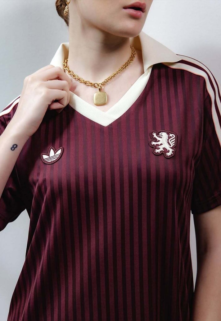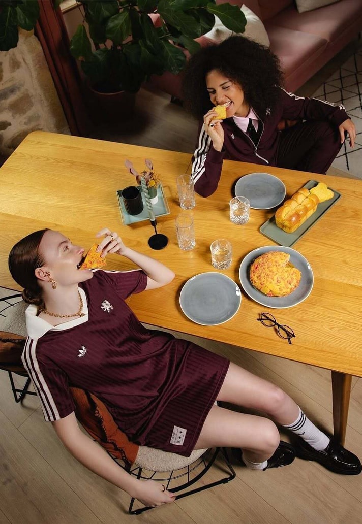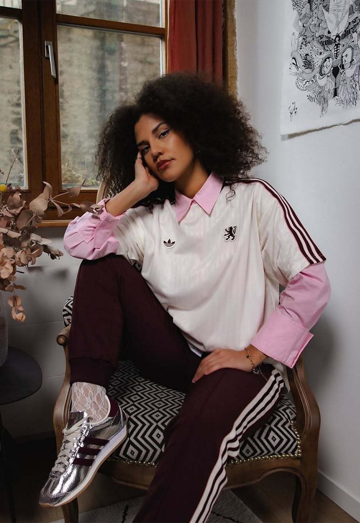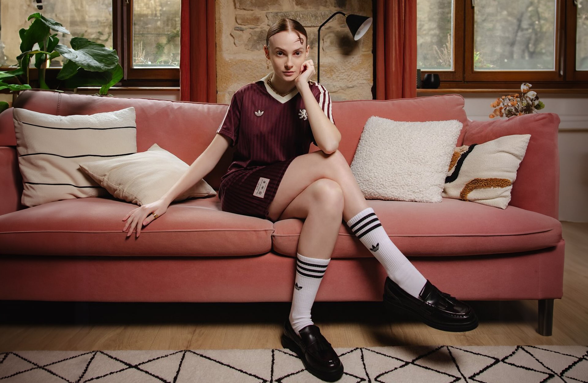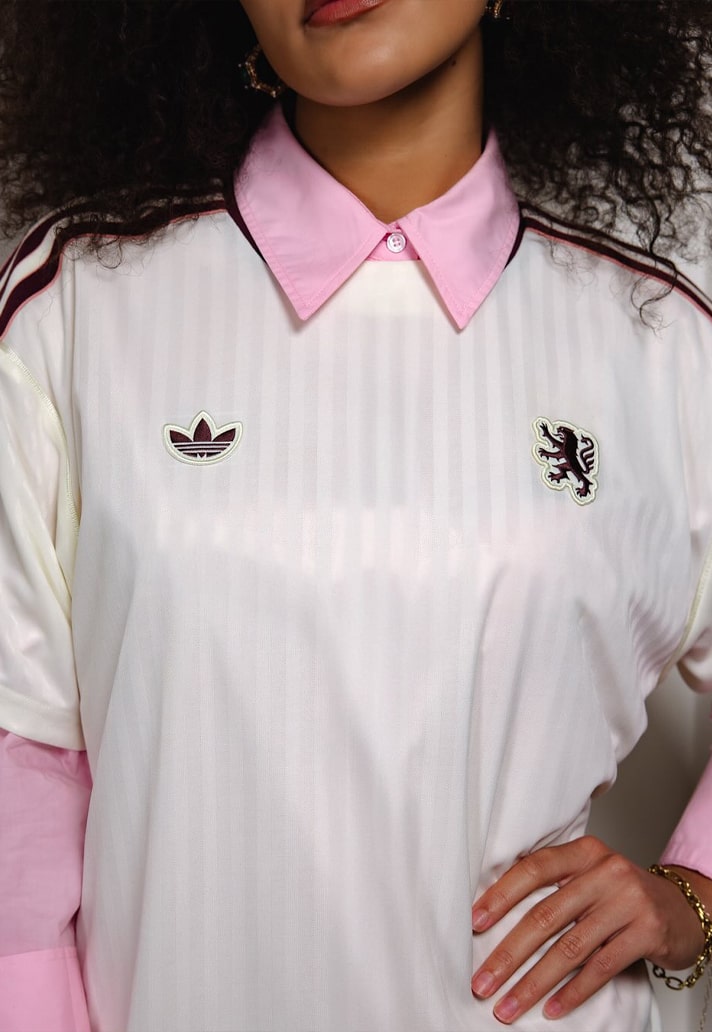 The new four-piece adidas Icon Women's OL collection is made up of a tracksuit, jersey and then – arguably the pick of the bunch, setting the collection’s stance – is a vintage football shirt-inspired dress.
