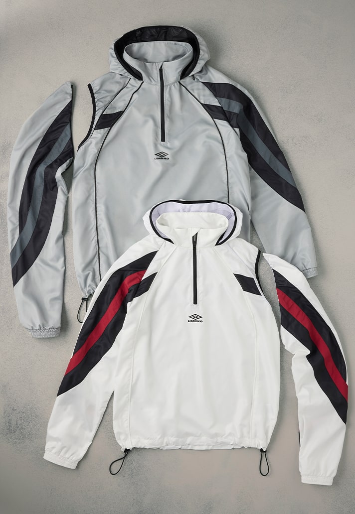 The collection sees some of Umbro’s most iconic pieces, such as the 90’s drill tops and the 1998 England track jacket, and reworks them for the next generation of football fashion lovers. One of the hero pieces of the collection, the Zip Off Sleeve Wind Jacket features new removable sleeves and a concealed hood, transforming the silhouette of a classic piece into a unique take on the archives. The Washed Drill Top and Diamond Drill Sweat directly reference the renowned ‘90’s drill tops, perfectly embodying the design personality of the Northern Quarter collection by employing the spirit of creative renewal in Manchester and using it to update Umbro’s most cherished designs.