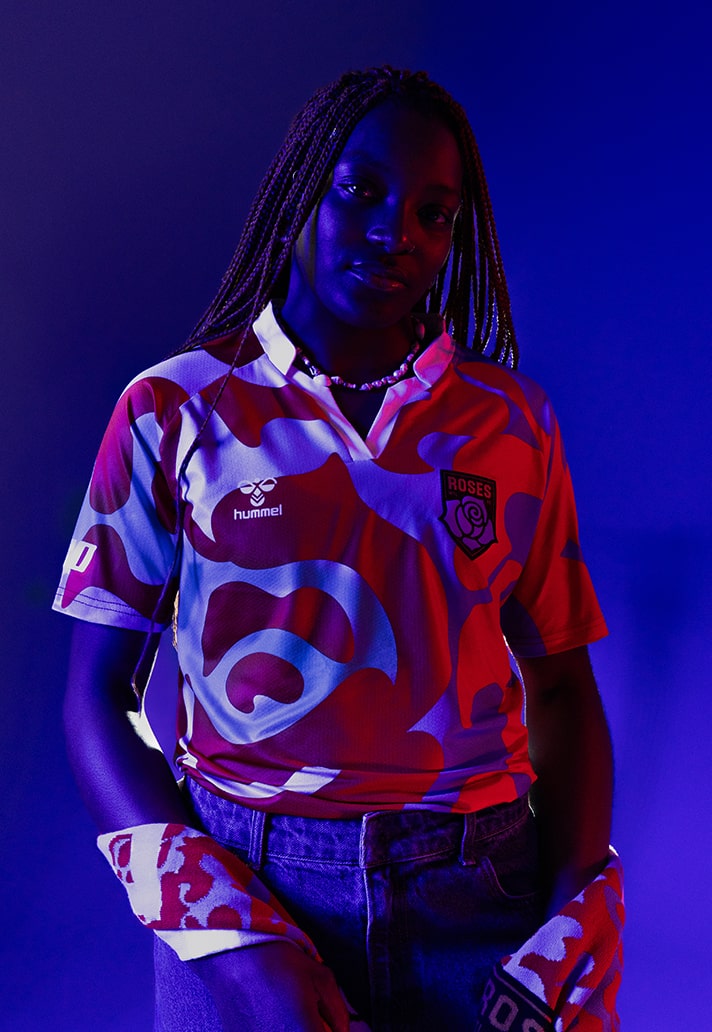 Acting as a bold tribute to the courage and diversity of their city, the Montréal Roses kit is fashioned in a striking blue and red palette. The kit is designed in collaboration with local artist Niti Marcelle Mueth and features dynamic patterns and a rose motif in order to symbolize the team’s blossoming strength and vibrancy. The avant-garde design embraces creativity and fearless expression, encouraging new trends in the women’s game.