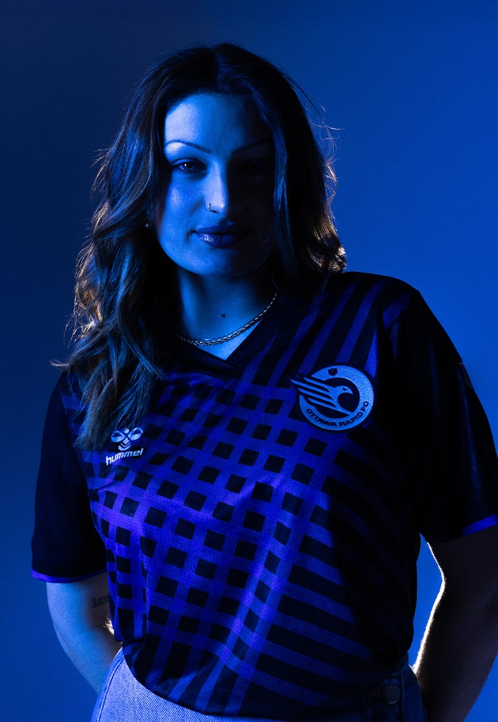 The Ottawa Rapid FC kit is a visual testament to speed, power and the beauty of nature. Vibrant accents cut through a dark black base, whilst hues of green and blue adorn the design. Large textural elements add depth and motion to the design, making every sprint and tackle feel like part of relentless natural phenomenon. The kit speaks to the unstoppable force that Ottawa Rapid intend to bring to the season.