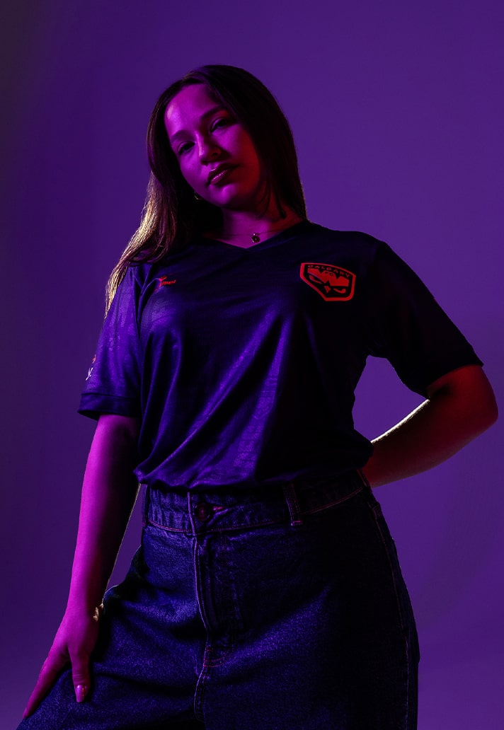 Calgary Wild FC enter their debut season modelling a deep purple and vibrant red jersey, mirroring the city’s dusk sky. Each colour represents a personality trait of the team – purple reflecting strength and ambition, whilst the red embodies the fiery spirit of each player. At the heart of the design sits the team crest, featuring the penetrating eyes of a prowler. This symbolizes the Wild’s strategic, all-seeing presence on the pitch, waiting to strike.