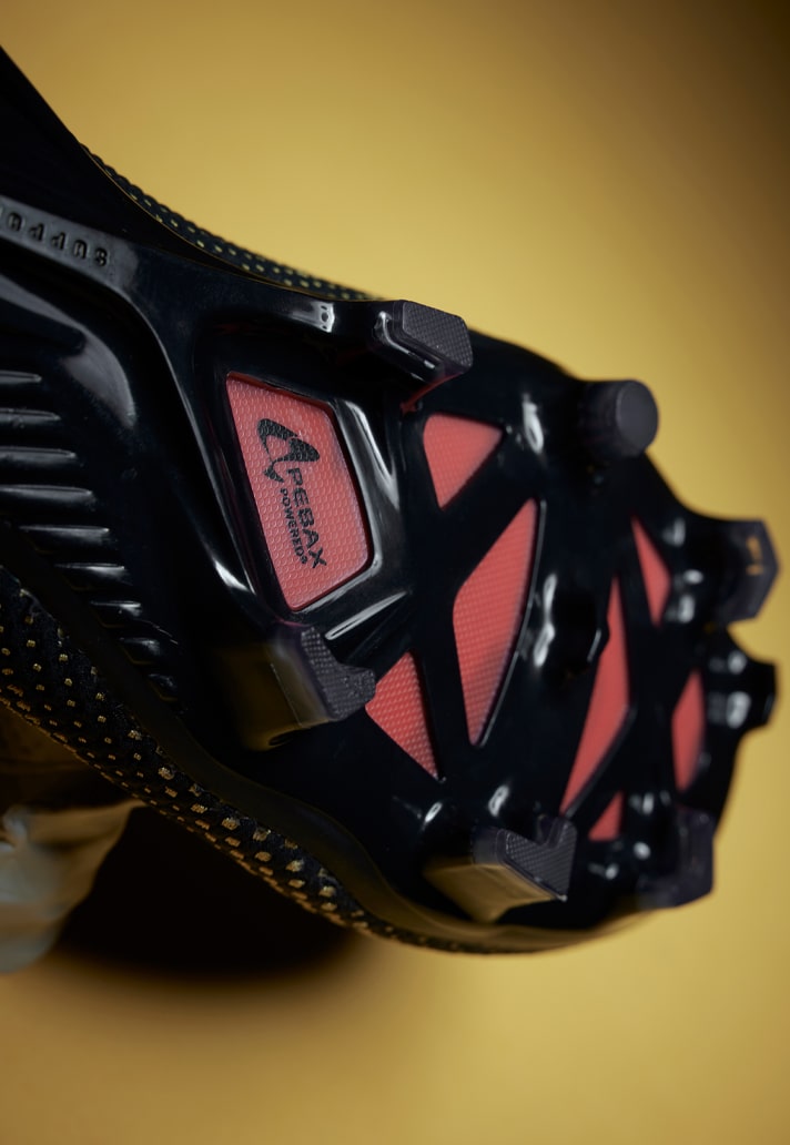 Further elevating comfort and performance, the stitchless vamp features embossed flex grooves to keep the boot dry, lightweight, and flexible, allowing it to move naturally with the foot. A 360° knitted tongue and collar, paired with soft microfibre rear-quarters, ensure a snug, comfortable fit throughout. Beneath it all, the outsole integrates “Wishbone” technology, delivering optimal stiffness at the rear and arch while promoting flexibility in the forefoot. Stud positioning has been meticulously designed for elite-level grip and endurance.