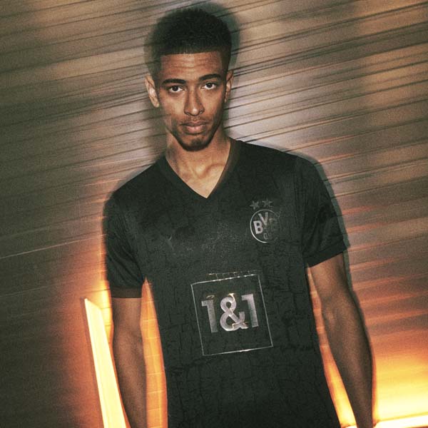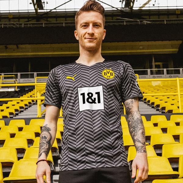 The jersey itself arrives in a neon yellow base, taking over most of the shirt. Black patterns create a disruptive design across the sleeves, on both short and long version. A v-neck collar fashions a zebra-like pattern, which also features on the sleeve cuffs. Black again adorns the Puma logo and BVB crest, sticking to the neon yellow and black colourway. The goalkeeper kit takes on a different colourway, modelling a smooth purple with the same detailing on the collar and sleeve cuffs.