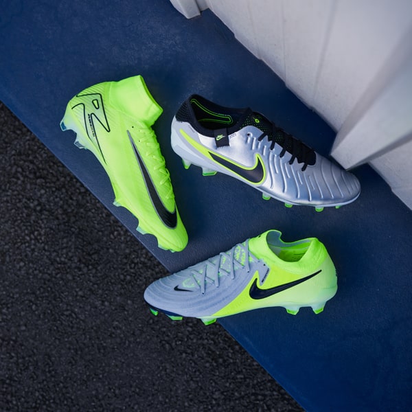 Bringing a bolt of brightness to proceedings as we head into the darker winter months, Nike launch the ‘Mad Voltage’ pack. It sees the Air Zoom Mercurial, Phantom and Tiempo lining up with a uniform shock of voltage throughout.