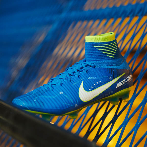 Alex explains; "We looked at how motorsport generates high energy on their cars. We took key elements of Neymar's life – whether that's his number for Brazil or the tattoos that he has on his body – and we combined the chequered racing flag with the Brazil flag to create this icon on the heel to represent his love of motorsport and his love of his country coming together."