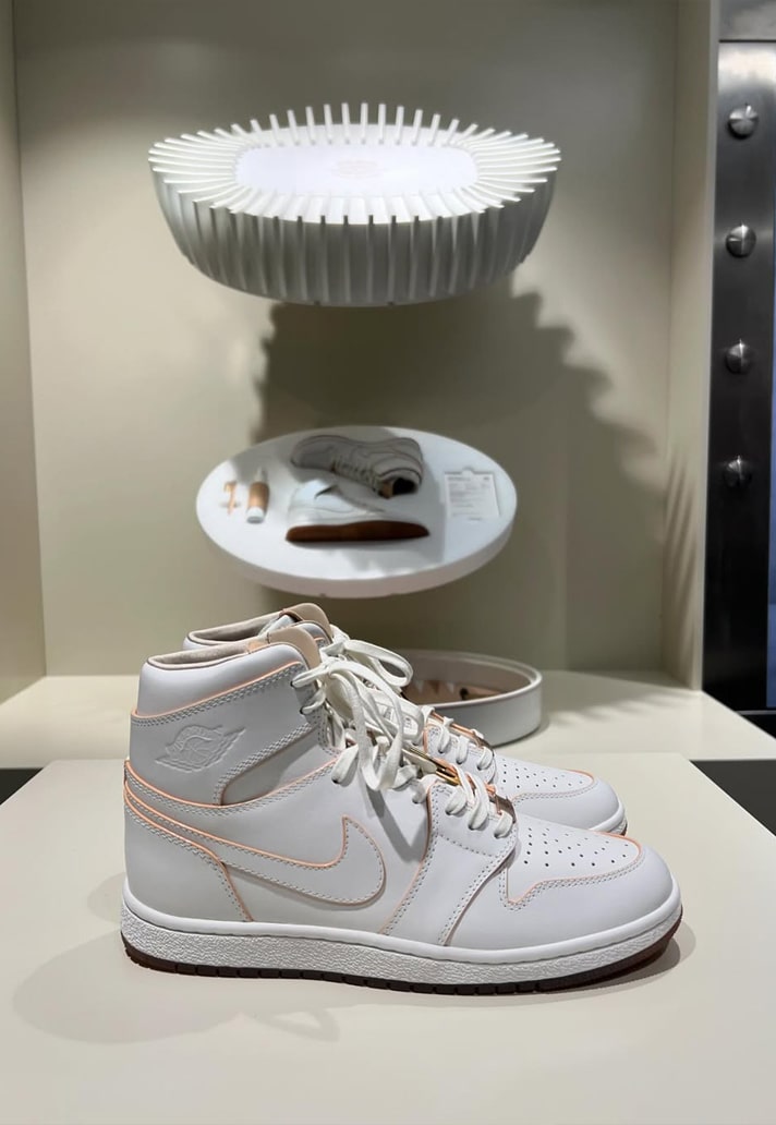 The Air Jordan 1 High '85 Wings "Phantom" colourway delivers an effortlessly elegant aesthetic, combining Phantom, Wolf Grey, Sanddrift, and Metallic Gold tones. Proudly bearing the coveted "Made in Italy" tag just beneath the iconic Wings logo on the tongue, this premium release boasts a refined white leather upper, paired with a matching midsole and a semi-translucent gum outsole.