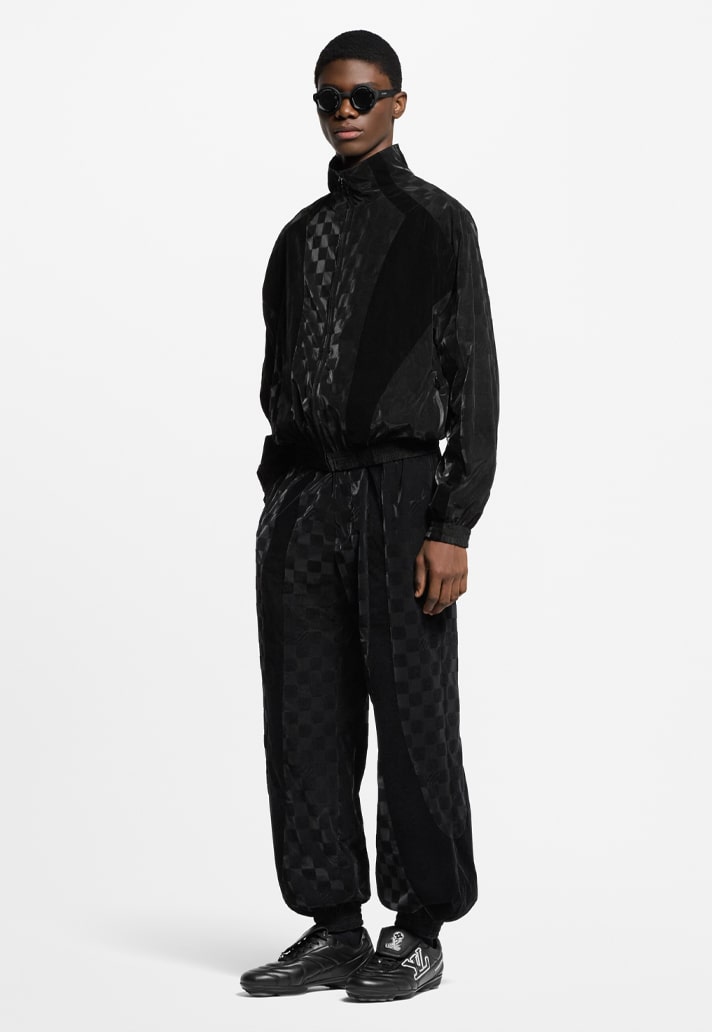 Pharrel’s collection included jackets, jerseys and shorts along with the newest soccer-inspired sneaker, all with a nod to the globally loved sport of football. The sneaker model is fashioned with a laced calf leather and a padded leather outsole whilst still not forgetting the Louis Vuitton esteemed look. The folded leather tongue, an inspiration from some of the most iconic football boots of all time, is imprinted with the established LV logo along with the LVERS UNITED logo. Using floral patterns from the Louis Vuitton Monogram and an interlinked LV, the designer has shaped a five-toed imprint on the rubber sole so that the wearer can leave a stamp of LV on soft grounds everywhere they go.