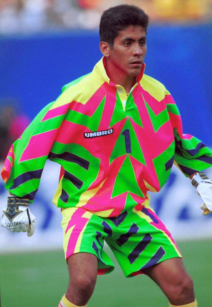 Umbro have been on top form with their shirt designs in recent seasons, continuing to reign as replica royalty with some of the best bespoke looks around, boasting a mixture of bold and brash or clean and tidy. But this is not something new; Umbro is one of the longest serving kit manufacturers in the game, with a heritage and experience to rival any brand out there. A look at their huge archive shows some of the most memorable and striking designs of all time, particularly from the golden era of kit design that was the 90s, and chief among them was the Mexico 1994 World Cup shirt, made famous on the back of Jorge Campos.