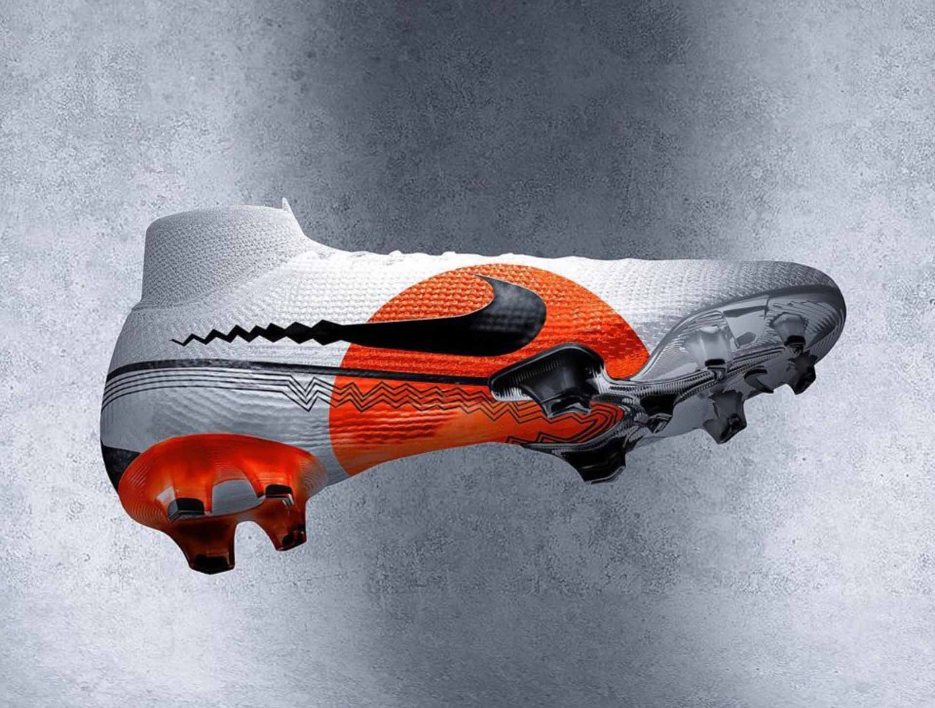 First up is the Mercurial Superfly VII in the style of the latest Nike Premier League 19/20 Tunnel Vision Merlin Ball. The specifics of the ball design have been carefully replicated onto the Superfly to make it look like something that would appear in one of Virgil Abloh's dreams, and we're all for that.