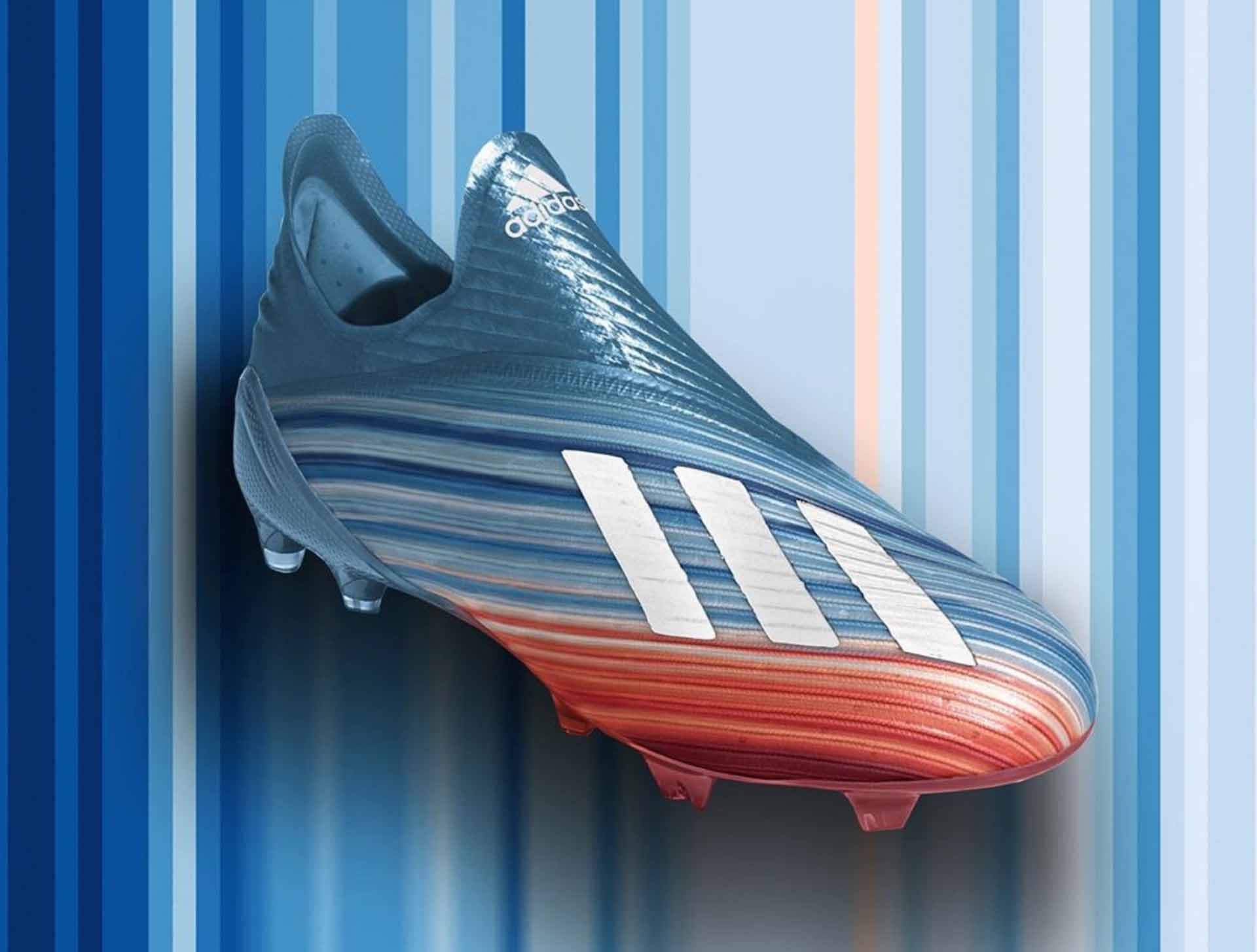 Next up is an adidas X 19+ concept based on the #showyourlaces campaign. These ‘warming stripe’ graphics are visual representations of the change in temperature as measured over the past 100+ years. Each stripe represents the temperature averaged over a year. Showing brands how they can effect change and spread positive message while remaining relevant aesthetically.