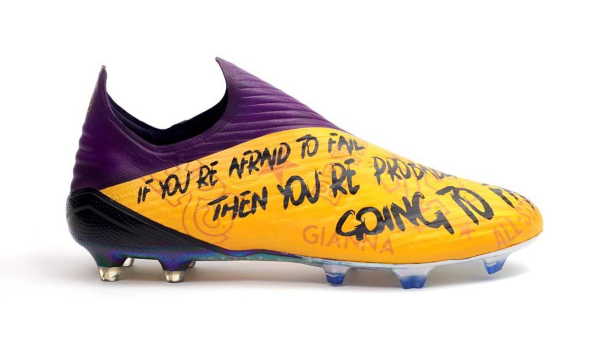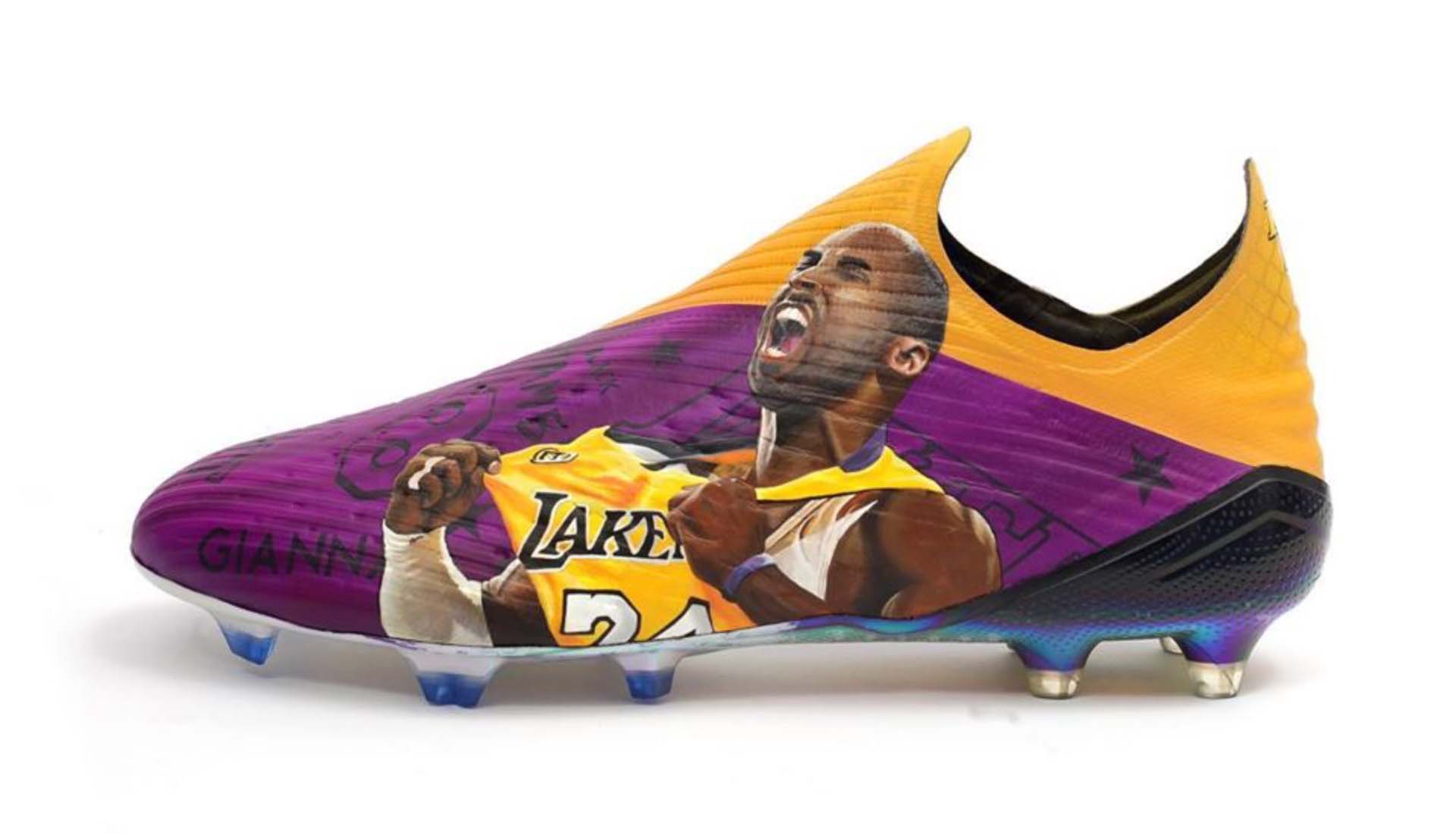 Commissioned by Getafe's on-loan Chelsea forward Kenedy, the adidas X 19+ has been transformed into a tribute to the legendary Kobe Bryant and his family. Drenched in the colours of the Los Angeles Lakers the boots feature a portrait of the NBA icon clutching the vest of his iconic number 24 Lakers uniform as well as further call outs to the life and legacy of the Bryant family scattered across the boots.