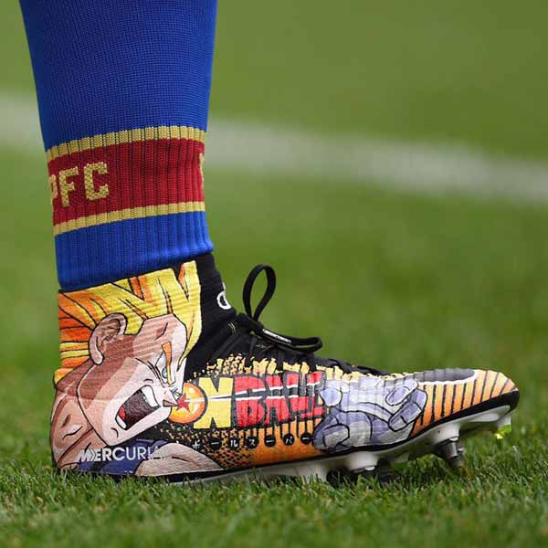The portrait of Kobe Bryant features on the left boot while 'If you're afraid to fail then you're probably going to fail' adorns the entire upper of the right boot, along with Silni's signature on the instep. Rather than just keeping them as a commemorative token of Kobe's influential impaction sport, Kenedy went one step further by wearing them in his side's 2-1 defeat to Barcelona on Saturday, in front of 89,000 fans. That's some way to put them in the spotlight.