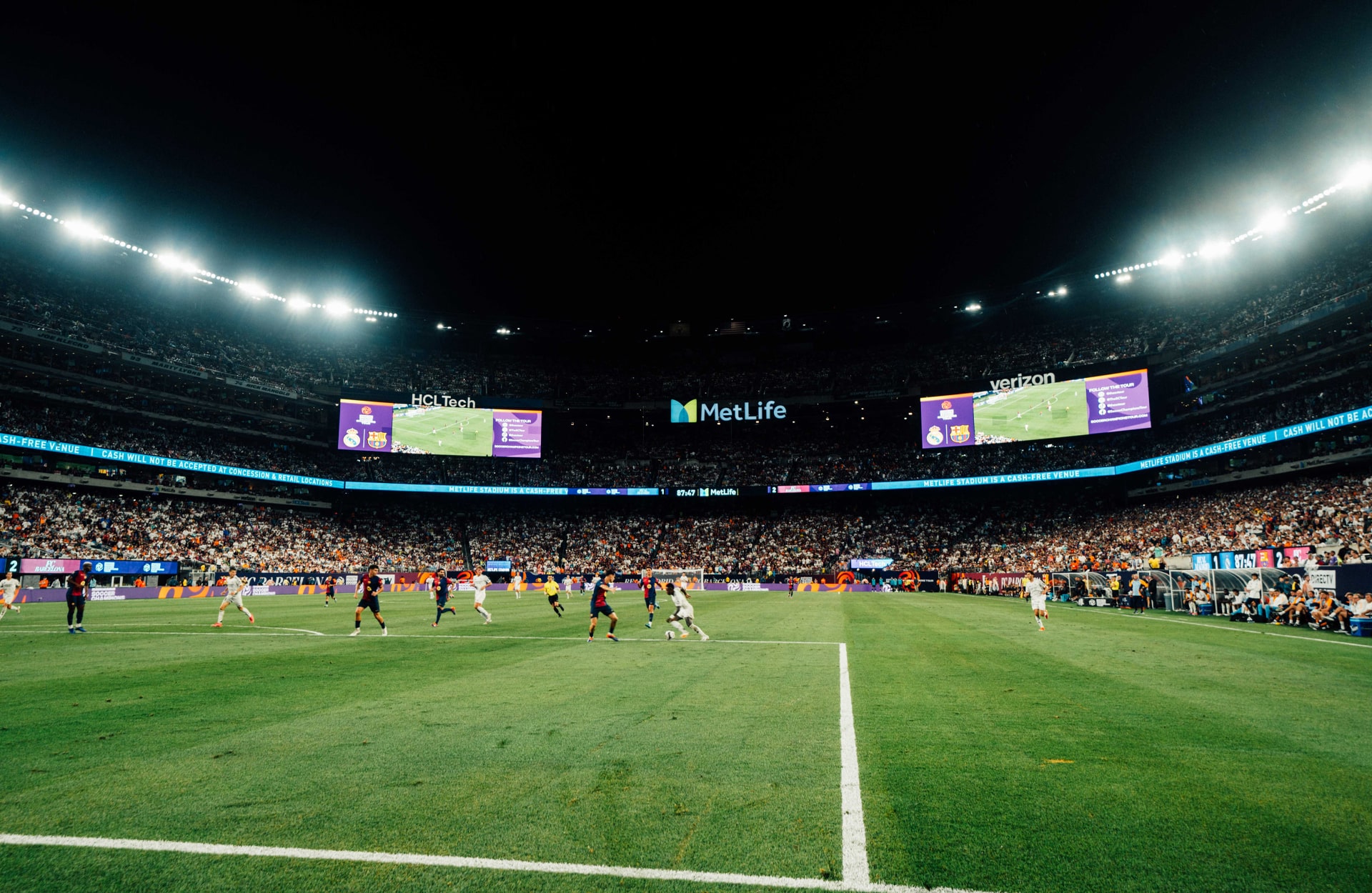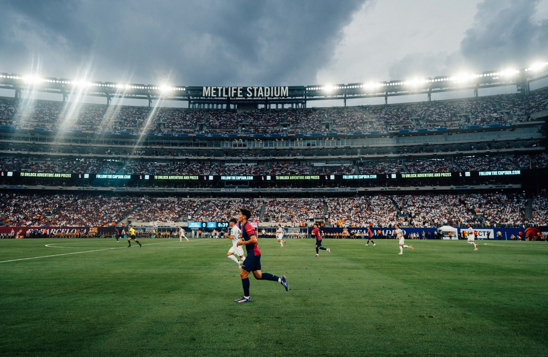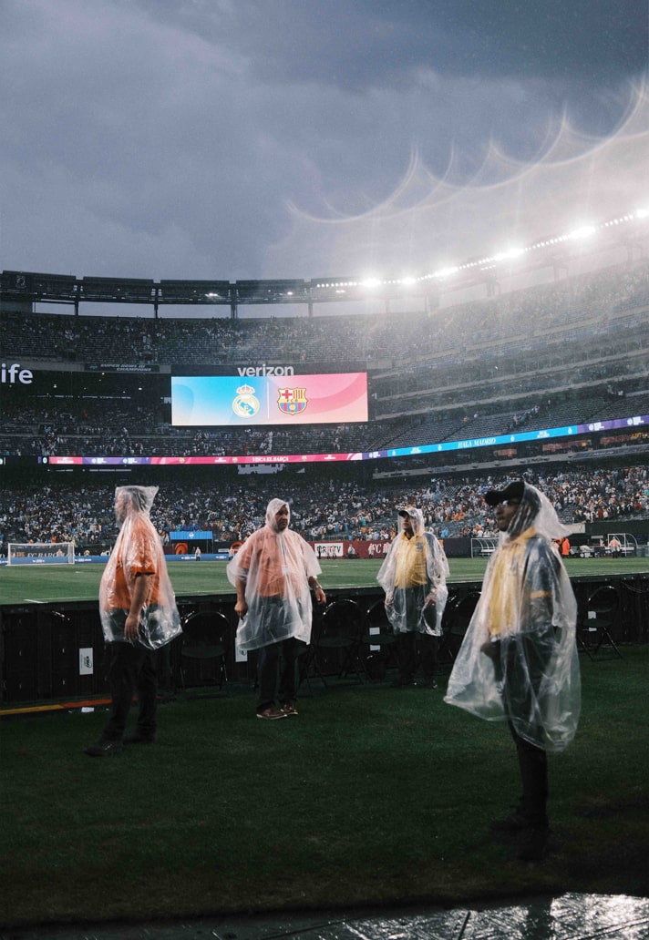 In just under two years time, the 82,500-capacity MetLife Stadium in East Rutherford, New Jersey will play host to the ultimate footballing showpiece when the 2026 World Cup final rolls into town. For now though, locals had to content themselves with, oh, just an El Clasico of all games, as Real Madrid – who’s preseason prep continues under our own watchful eyes – took on their eternal La Liga rivals Barcelona in what was a stormy preseason clash – although not the stormy you may have in mind for this type of meeting.