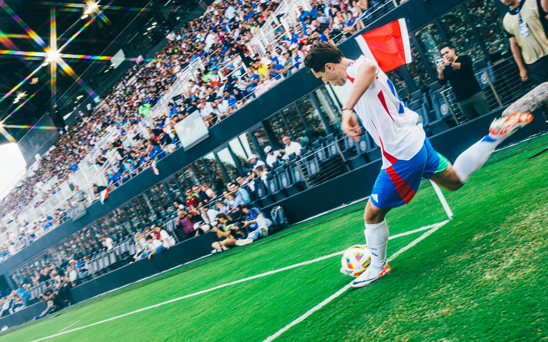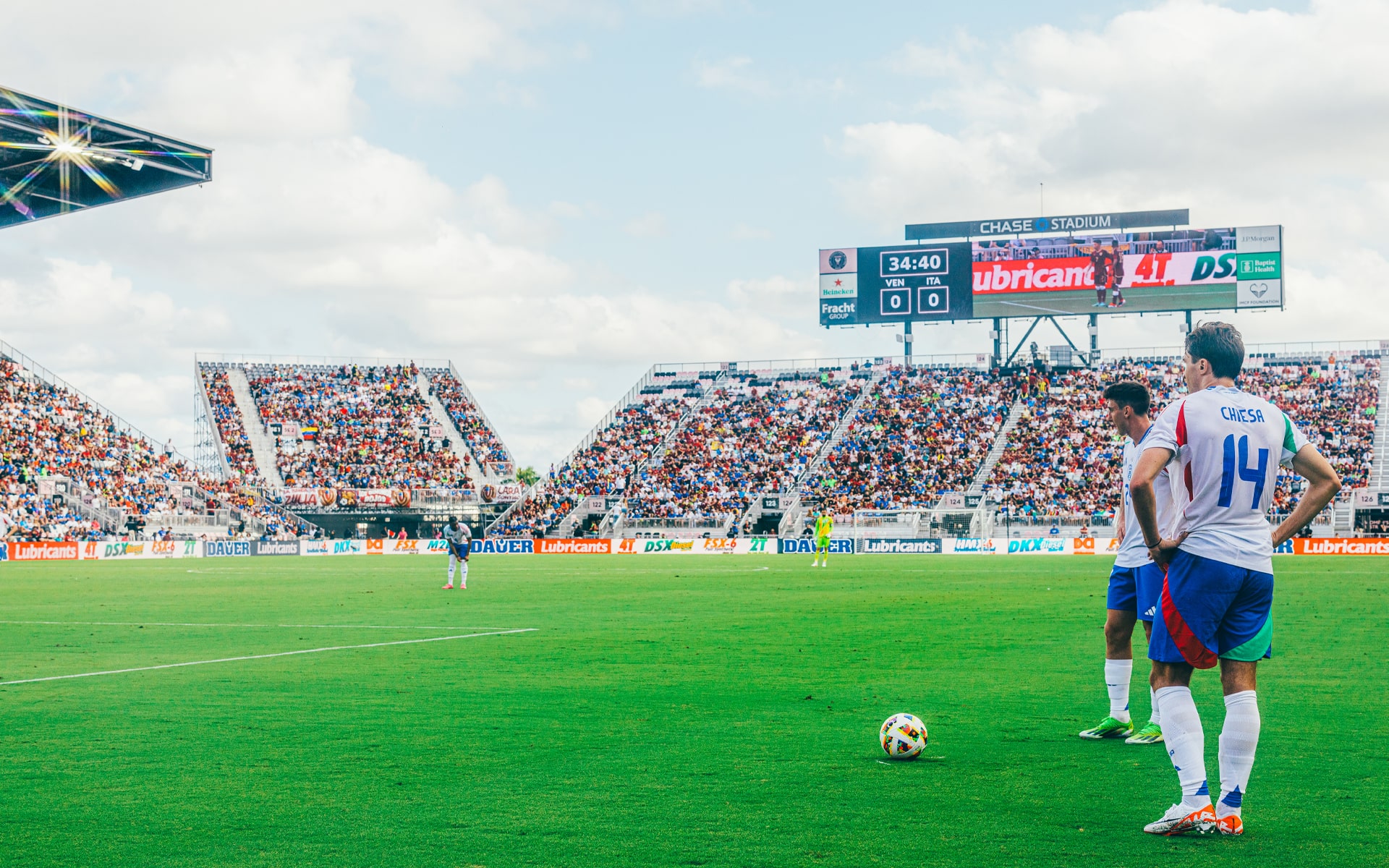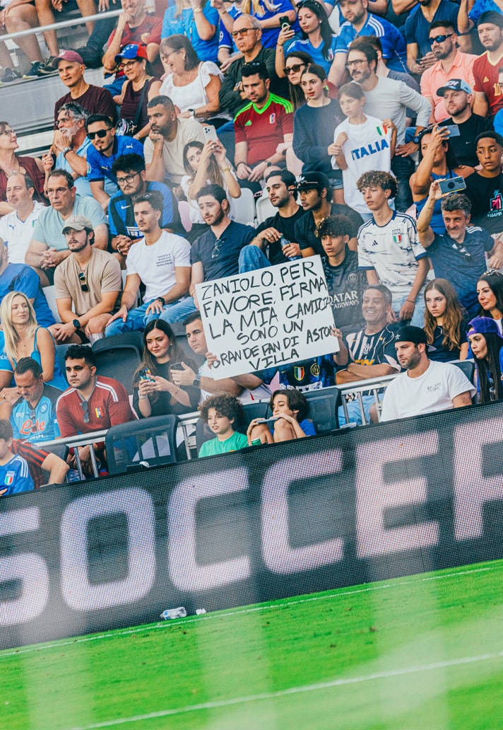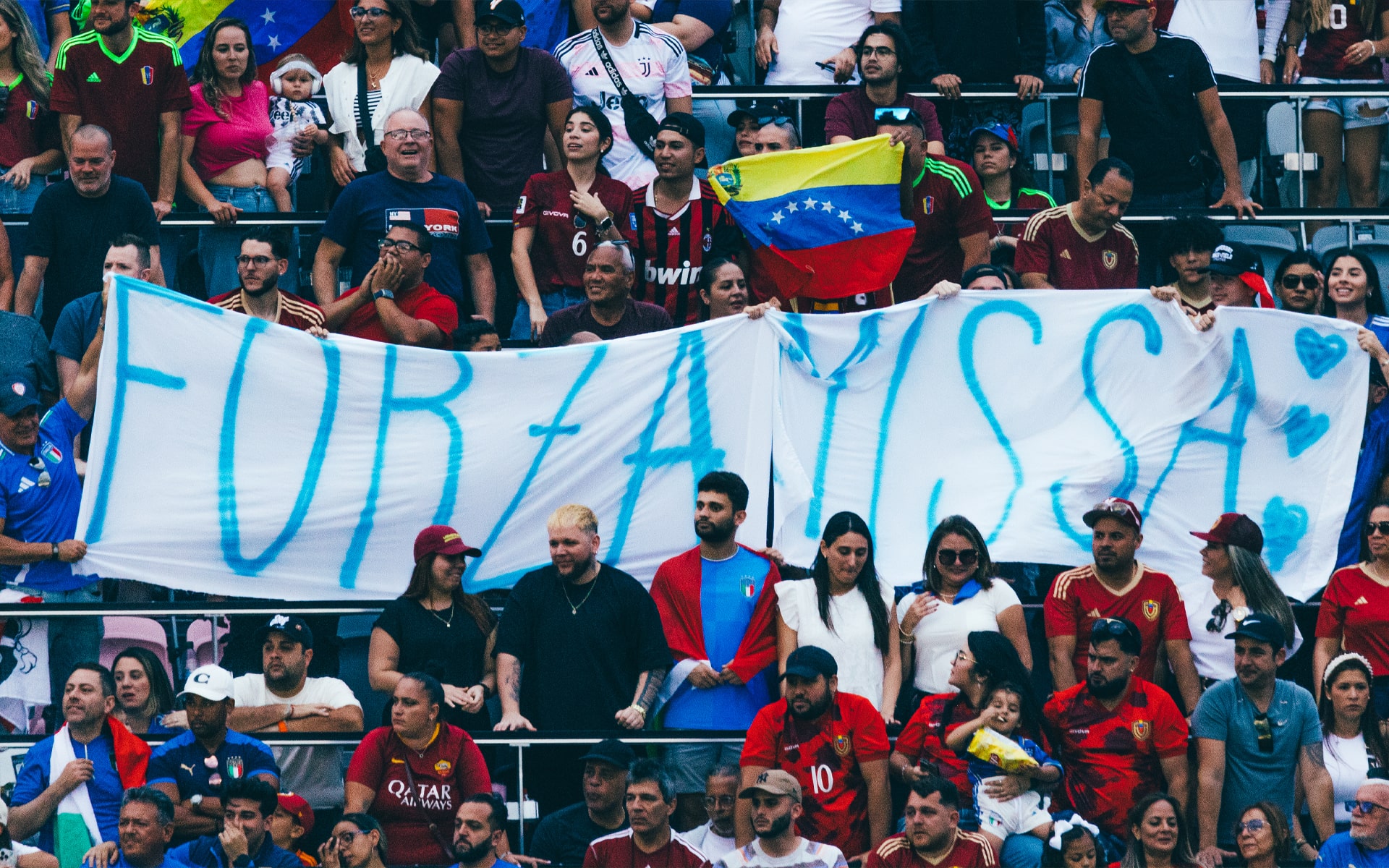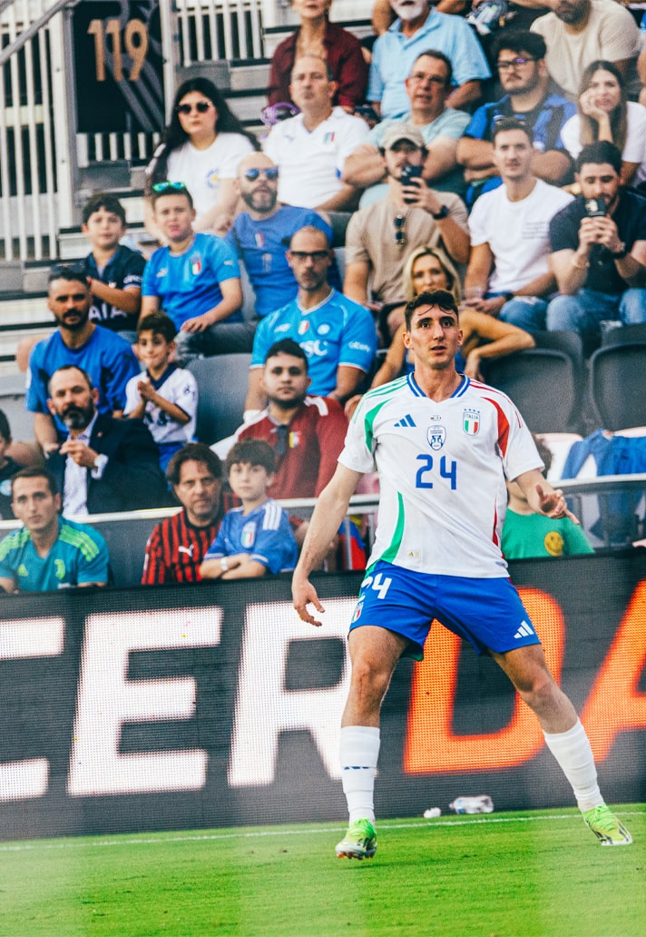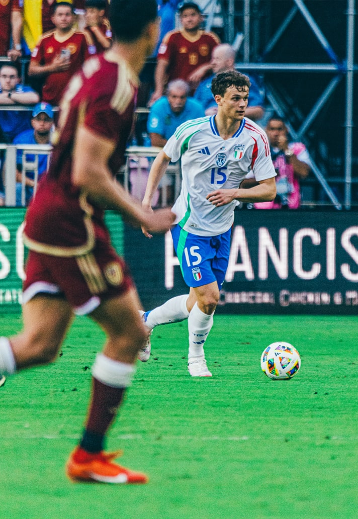Decked out in their new adidas away shirt for Euro 2024, their first opponents were Venezuela, who used the fixture as preparation for their participation in Copa America 2024. The game took place with South of Florida as a backdrop, and a vibrant Chase Stadium witnessed quite the game. The energy of the fans from both teams was electrifying, with the stands decorated in a sea of blue and maroon jerseys, representing the Azzurri and La Vinotinto.