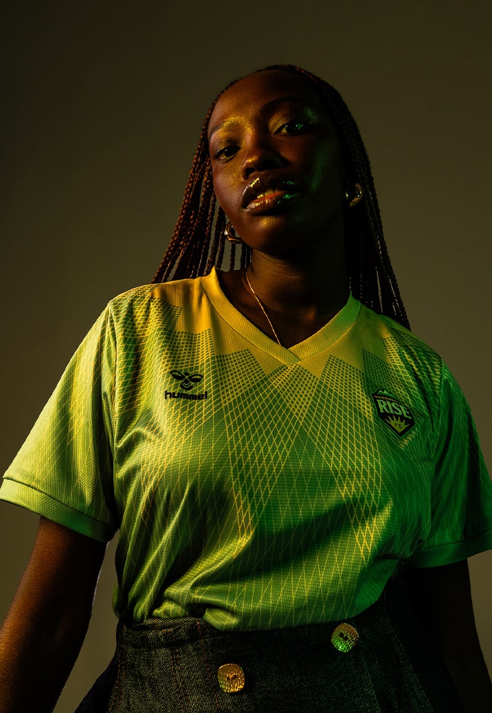 Inspired by the radiant energy of the sun, the Vancouver Rise FC home kit features a dynamic sunburst pattern – intended to reflect hope and growth. Vancouver Rise aims to to illuminate the path for future generations of female athletes, bringing inspiration on and off the pitch in a bid to aid the growth of the women’s game.