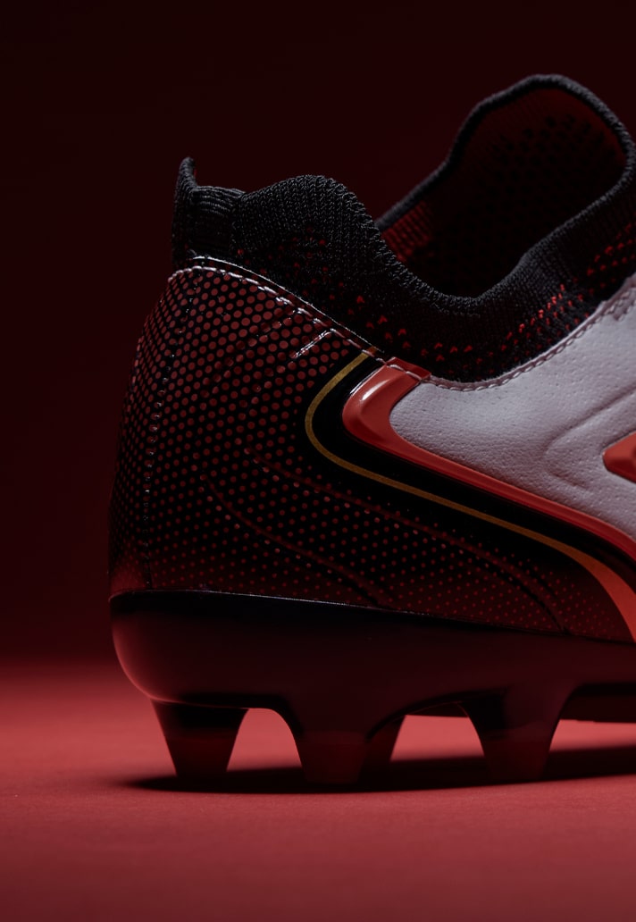 Further elevating comfort and performance, the stitchless vamp features embossed flex grooves to keep the boot dry, lightweight, and flexible, allowing it to move naturally with the foot. A 360° knitted tongue and collar, paired with soft microfibre rear-quarters, ensure a snug, comfortable fit throughout. Beneath it all, the outsole integrates “Wishbone” technology, delivering optimal stiffness at the rear and arch while promoting flexibility in the forefoot. Stud positioning has been meticulously designed for elite-level grip and endurance.